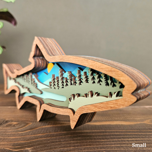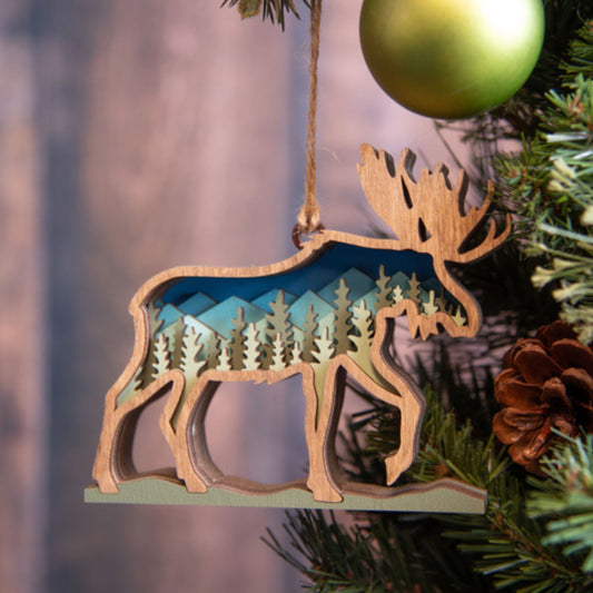 3D Layered Wood Majestic Moose Wall Art with Mountain and Forest Landscape