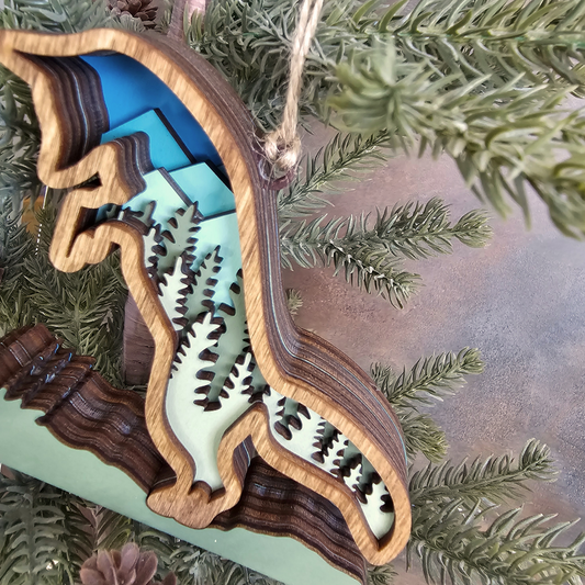 3D Layered Fox Art with Mountains & Trees