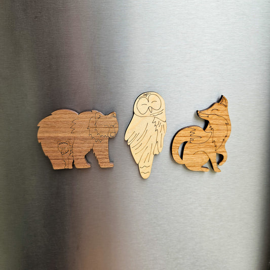 Wooden Animal Magnets Set - Bear, Owl, and Fox