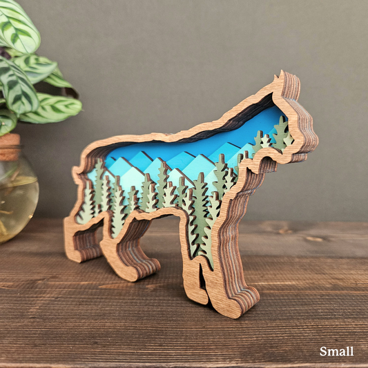 3D Layered Wood Bobcat Ornament for Rustic Wildlife Decor
