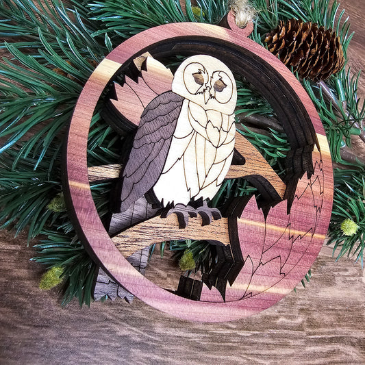 Wood Quilt Owl Ornament-Natural