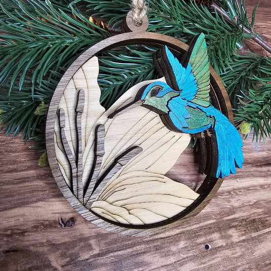 Wood Quilt Hummingbird Ornament-Painted