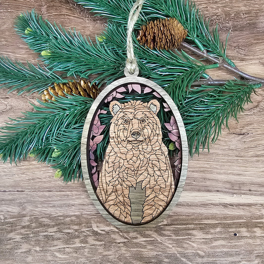 Wood Quilt Bear Ornament
