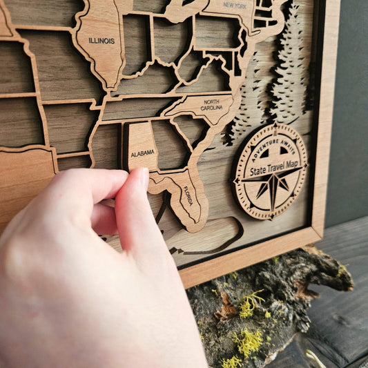 USA State Travel Map-Natural Wood