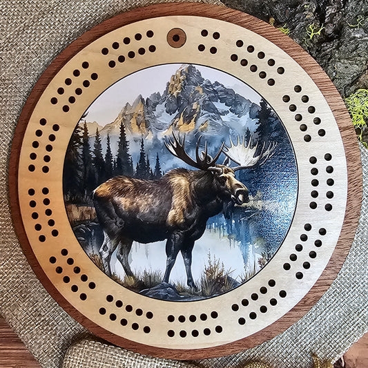 Moose Design Mini Circle Cribbage Board