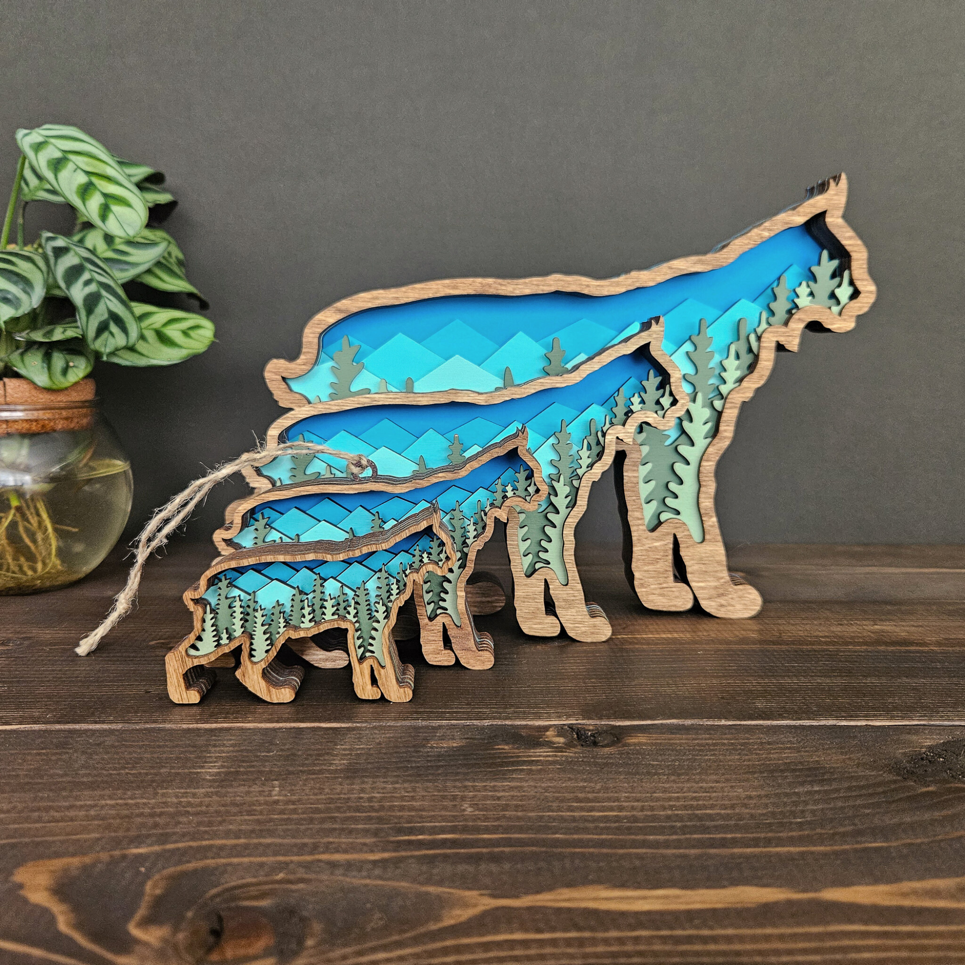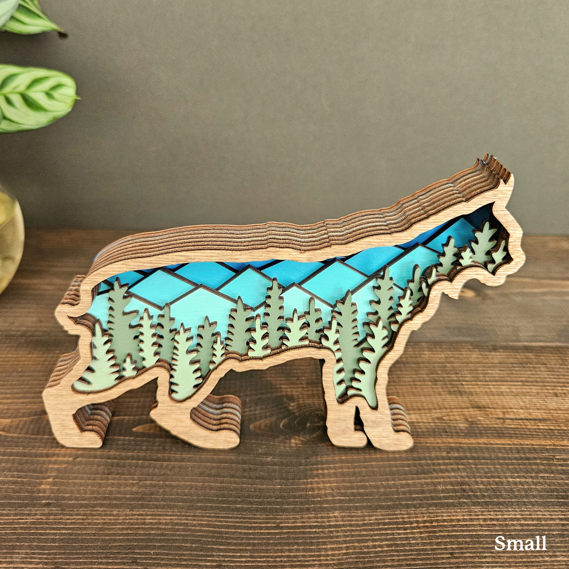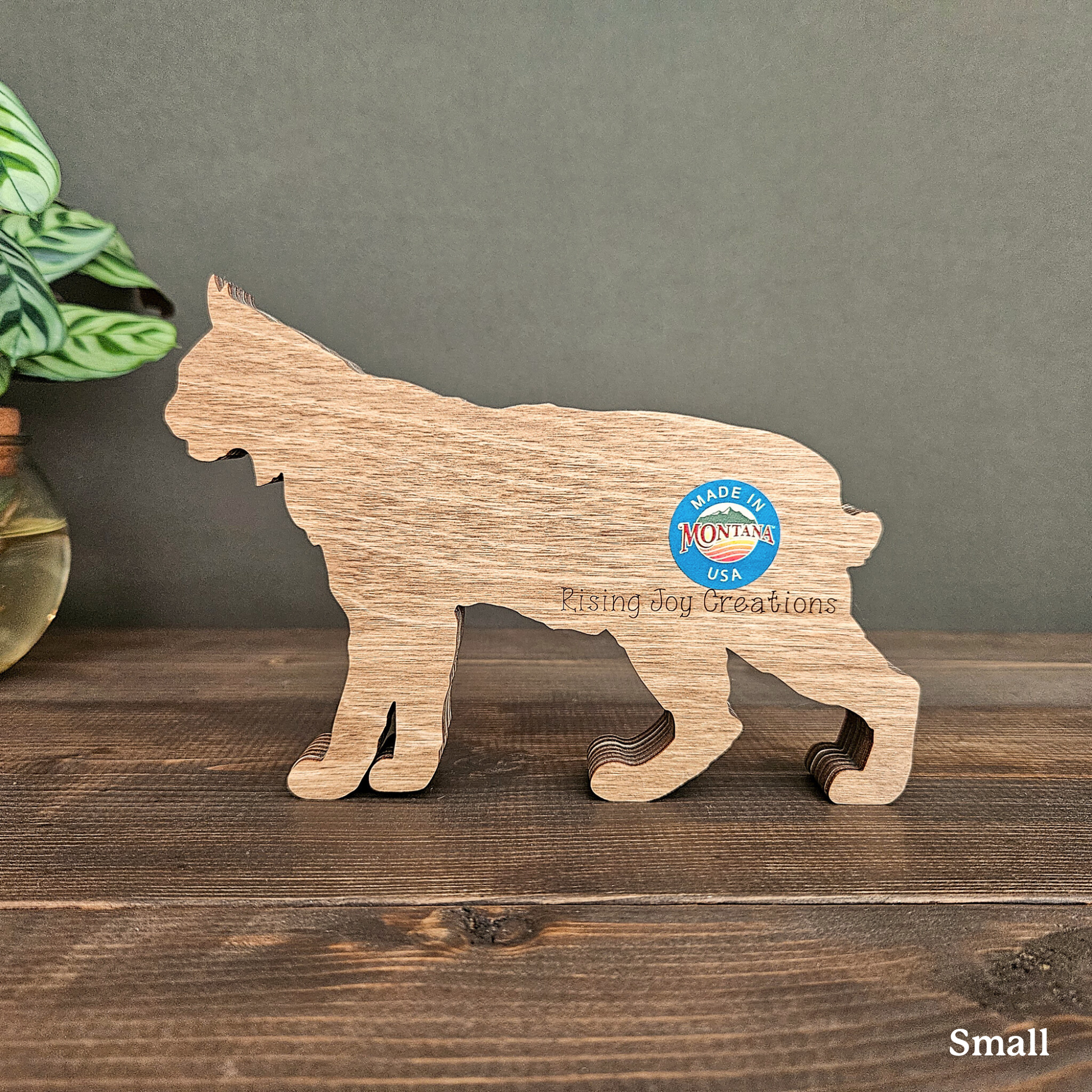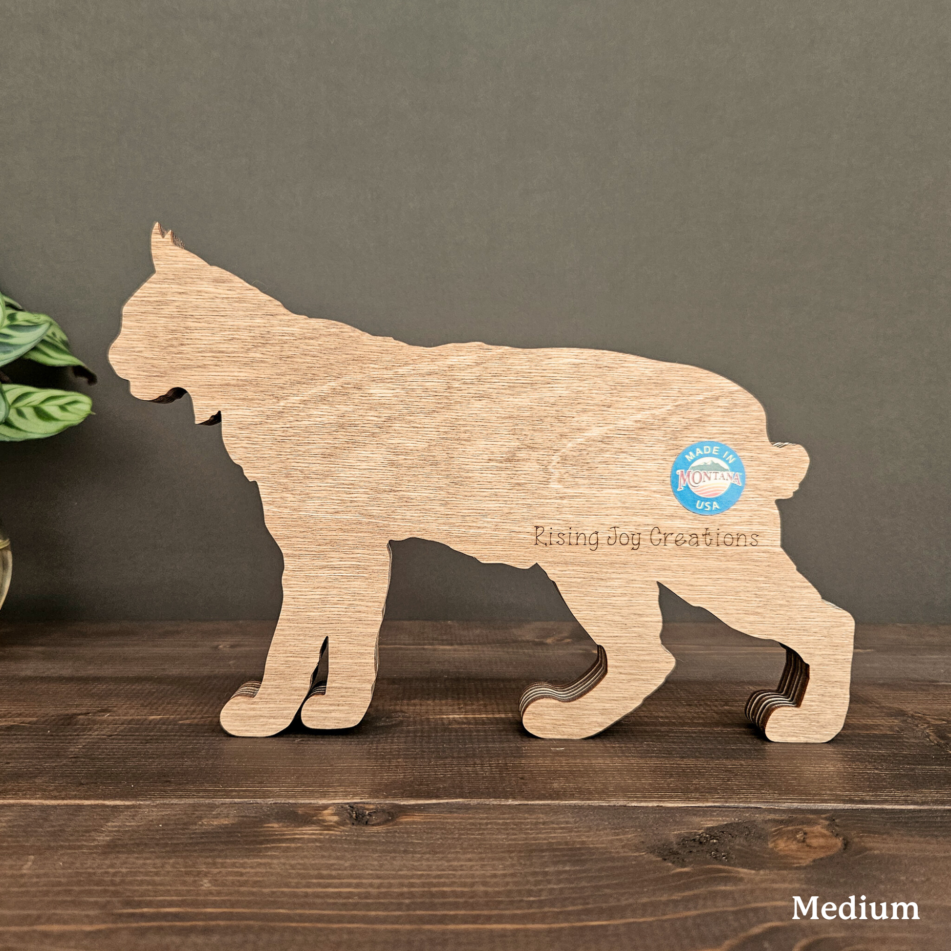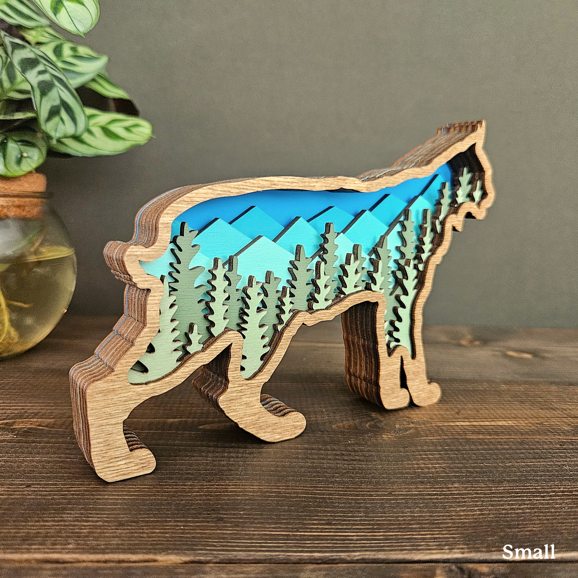 The details in this wood-layered Bobcat art piece are amazing. It will look great in your home, office or cabin.