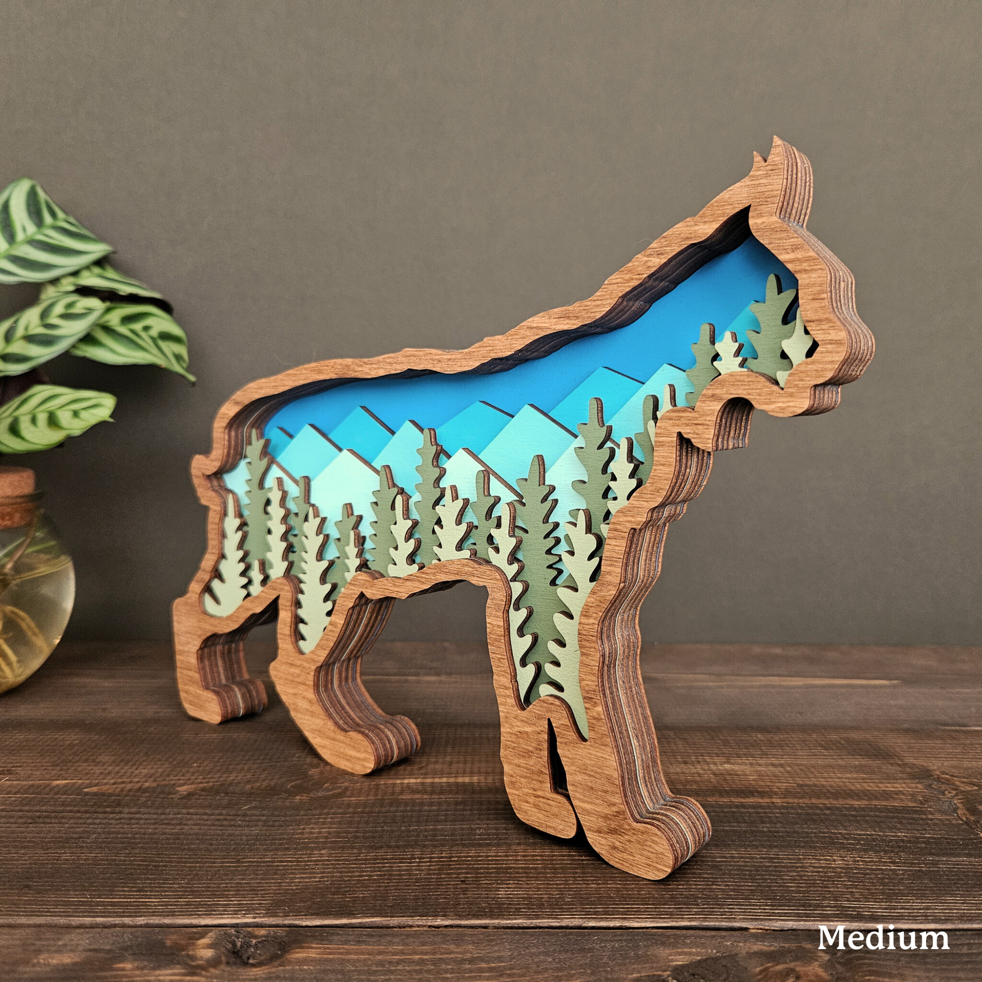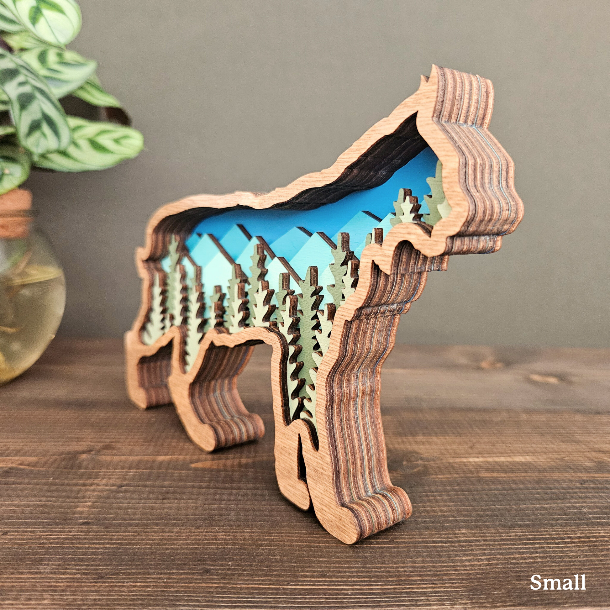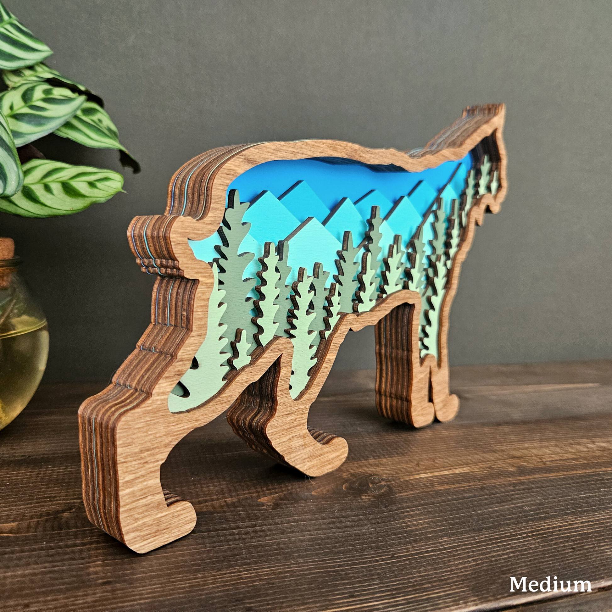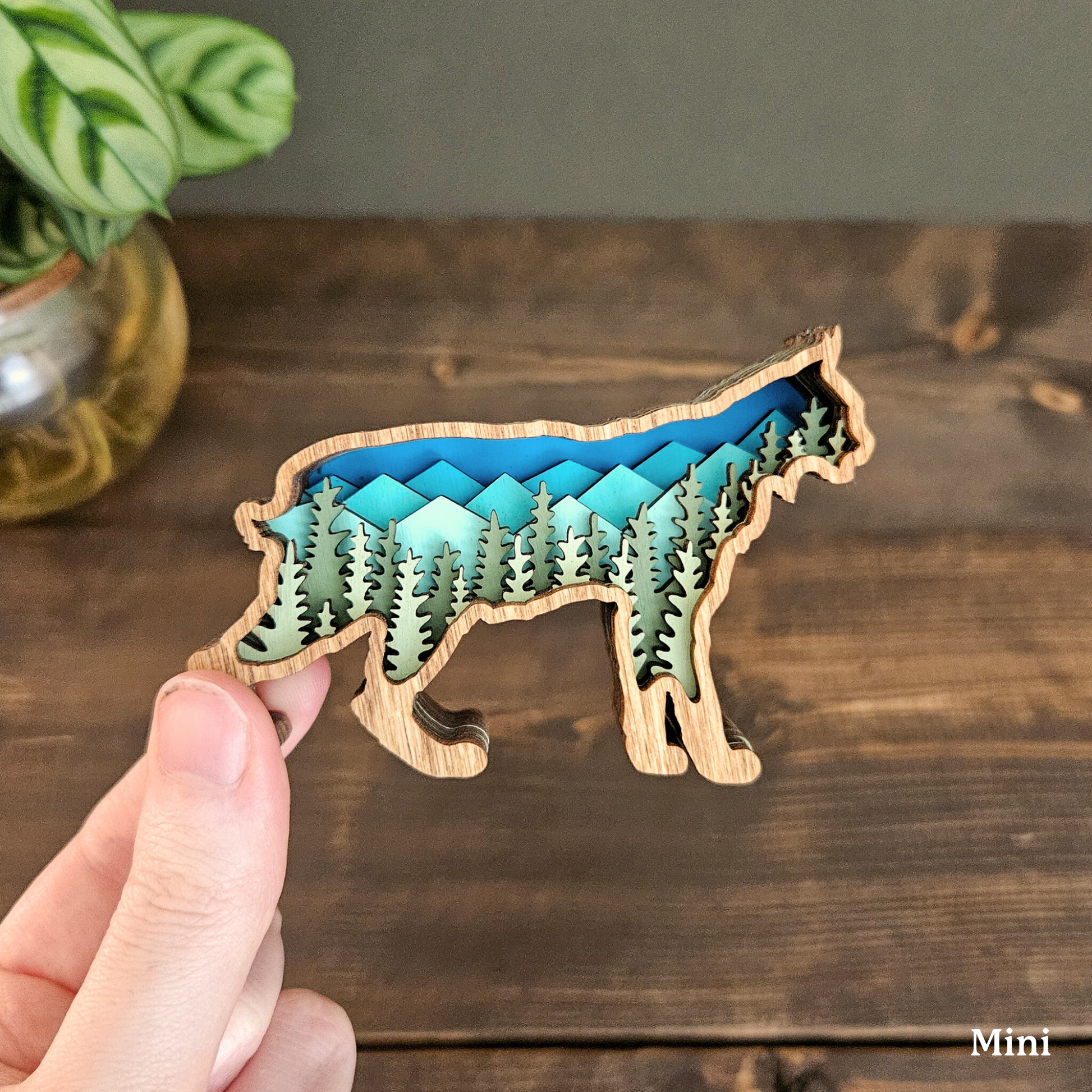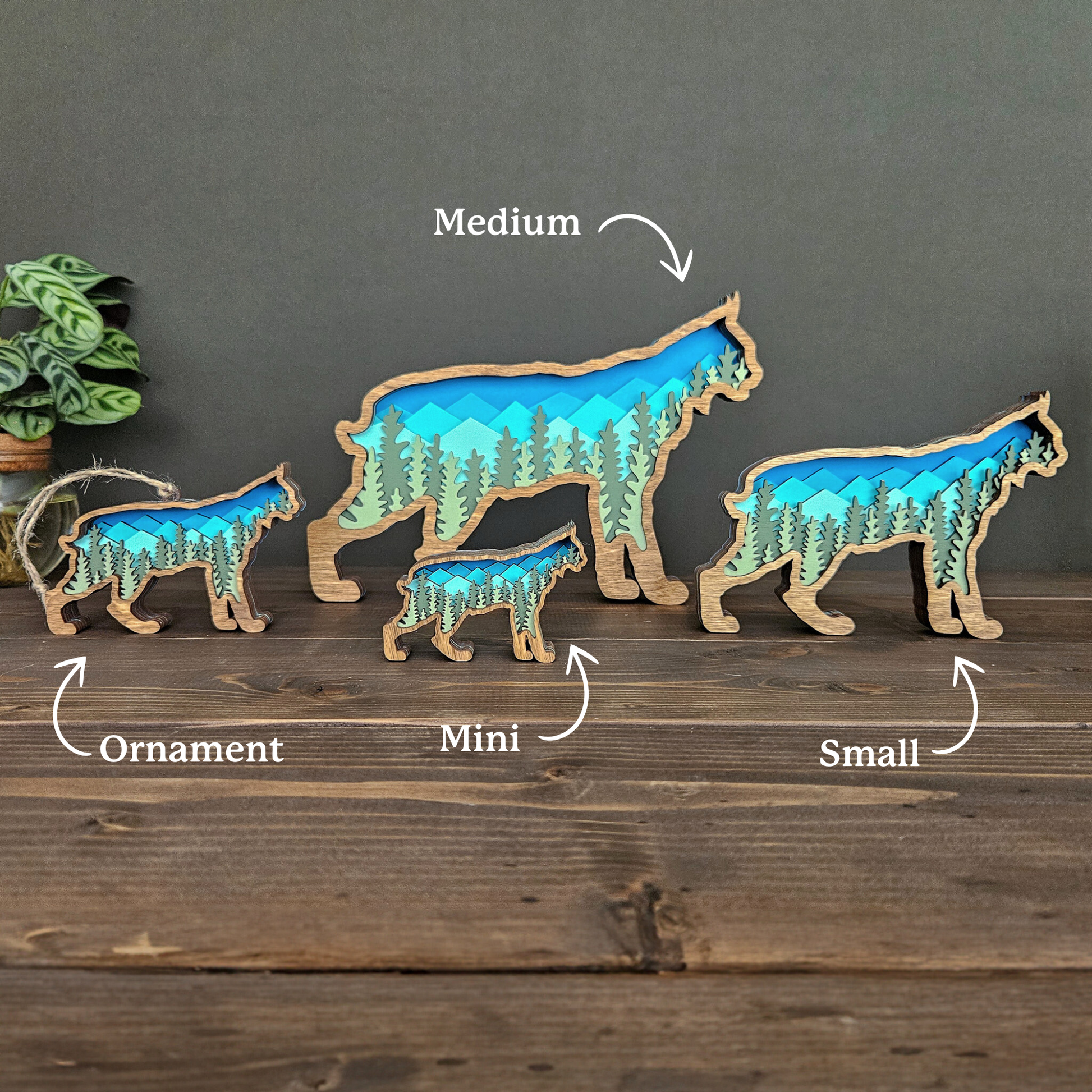 The details in this wood-layered Bobcat art piece are amazing. It will look great in your home, office or cabin.