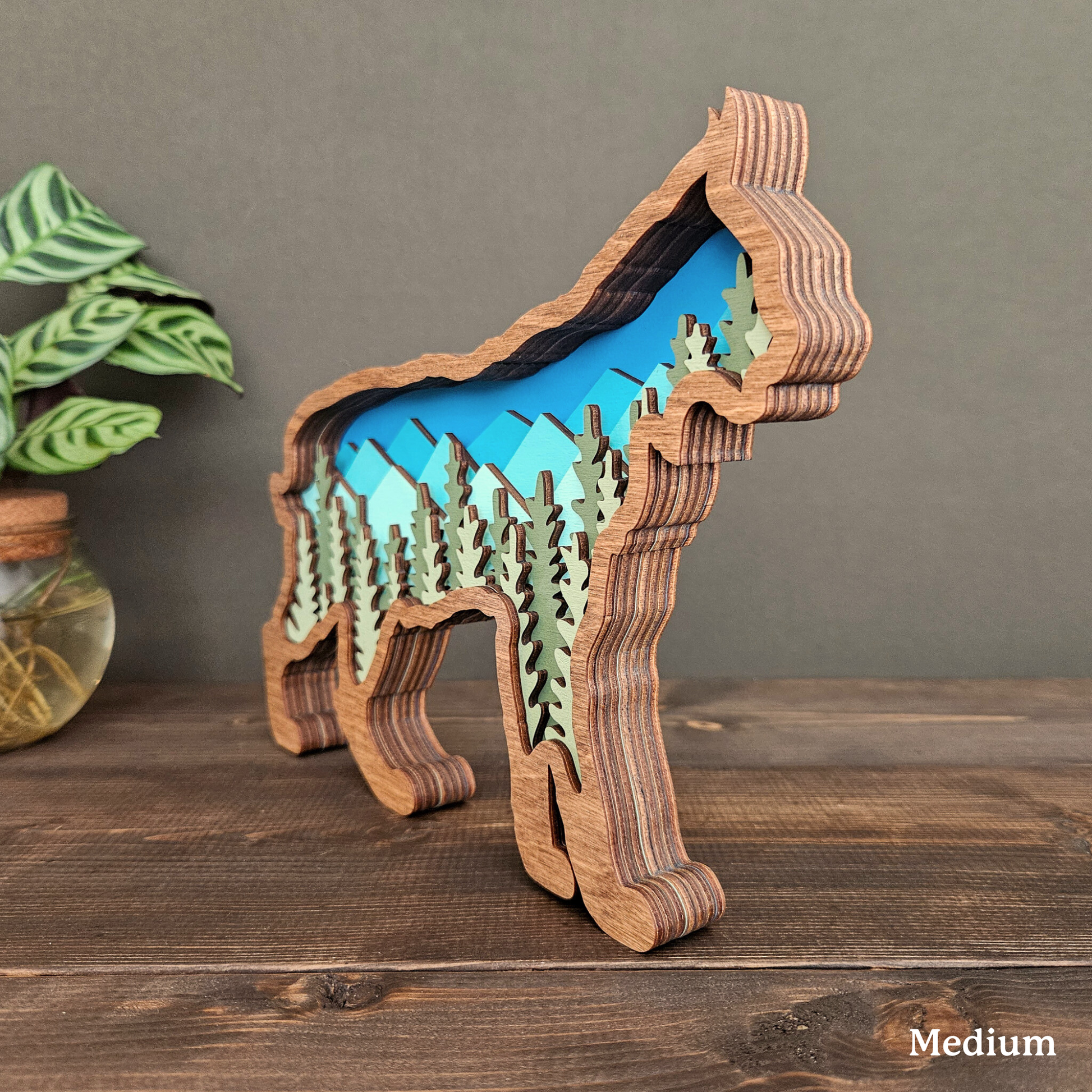 This art piece is laser cut and has three different sizes available (rounded to the nearest quarter inch):