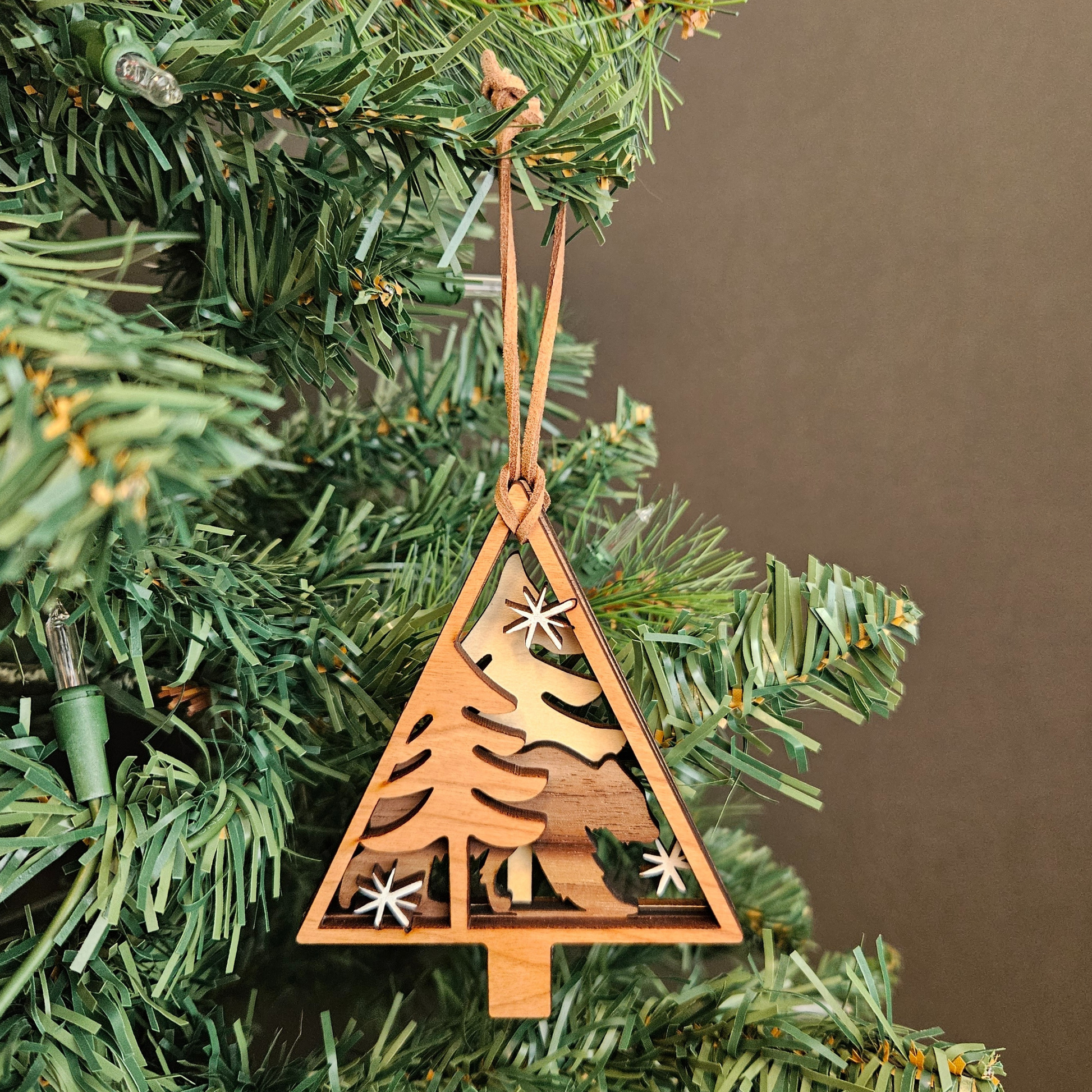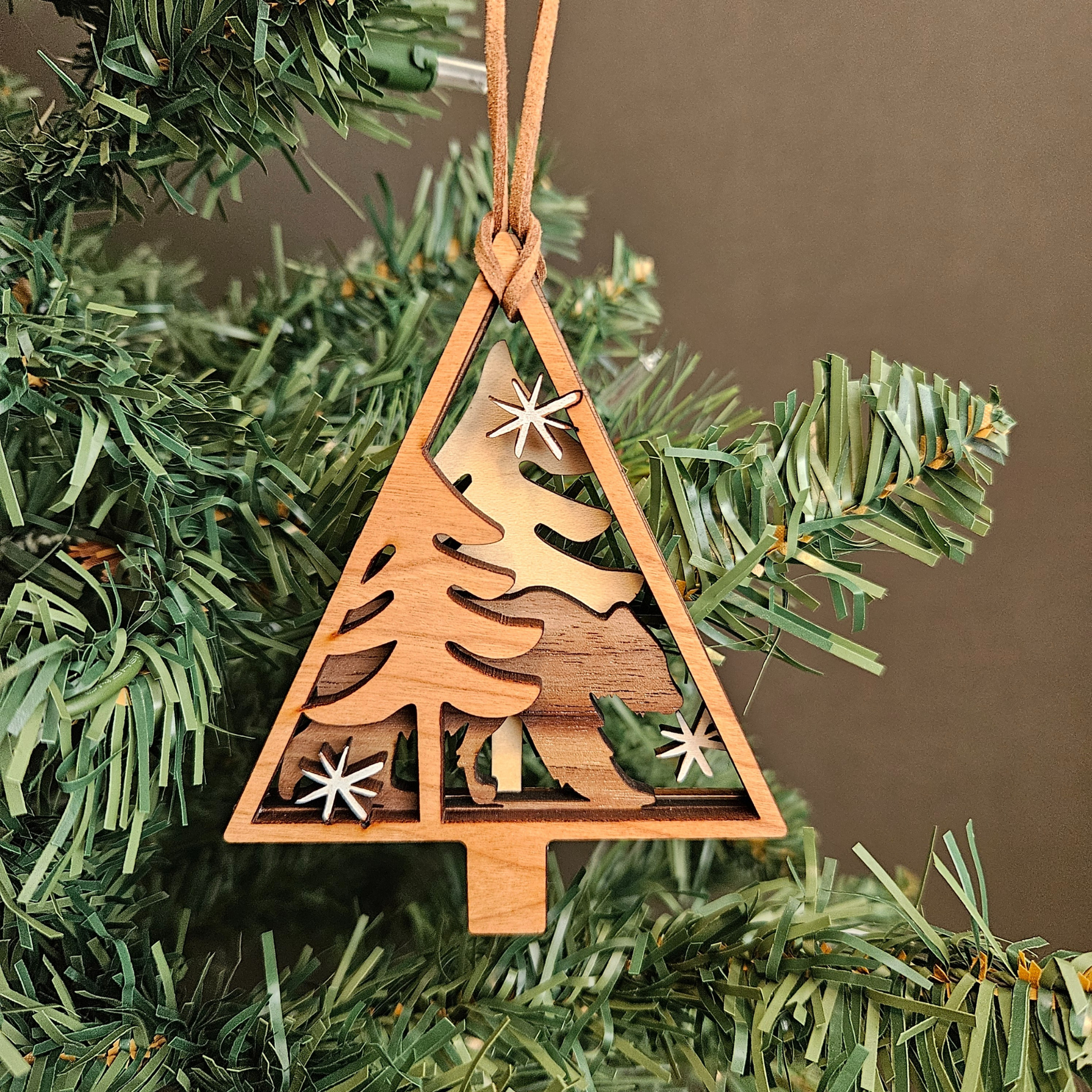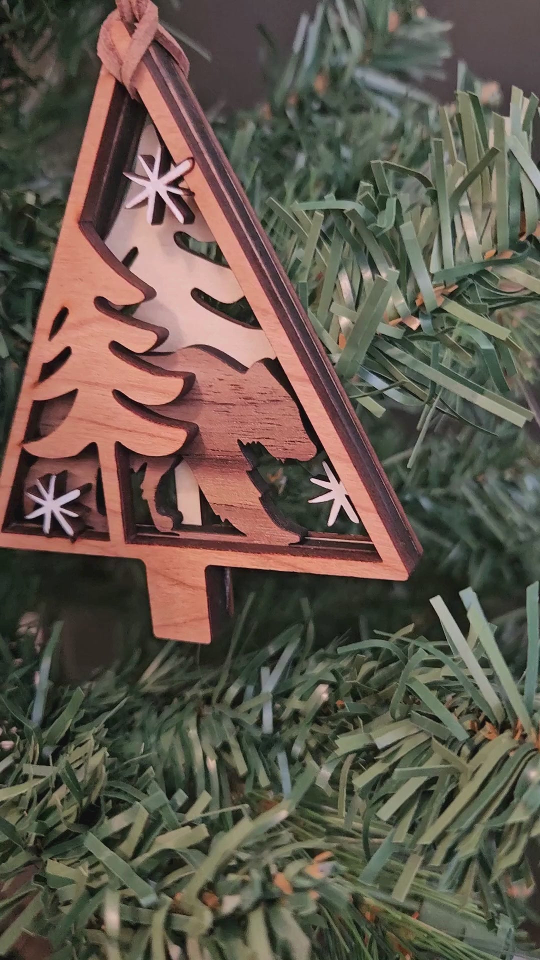 This beautiful ornament is crafted from three separate layers of wood, each intricately cut and assembled to create a stunning 3D design. Whether you're gifting it or adding it to your own tree, it's a keepsake that will be treasured for years to come.