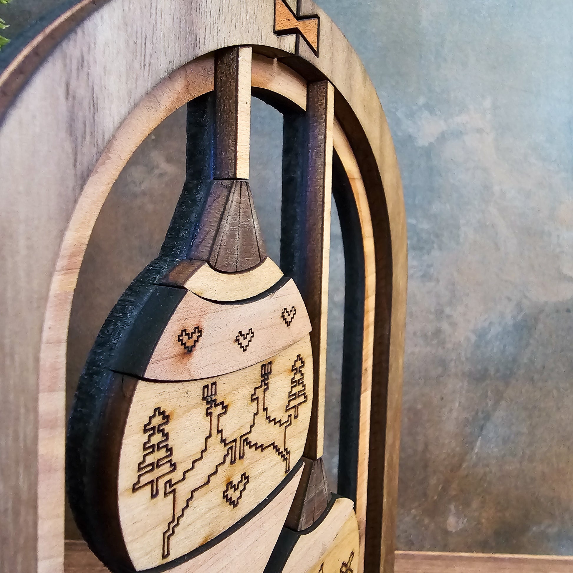Add a timeless holiday touch to your home with our Christmas Ornament Arch. This beautiful piece features two classic Christmas ornaments, carefully crafted from a mix of cedar, walnut, cherry, and maple wood, making it the perfect accent for your holiday mantel or entryway. The unique grain patterns of the wood ensure each piece is uniquely yours.