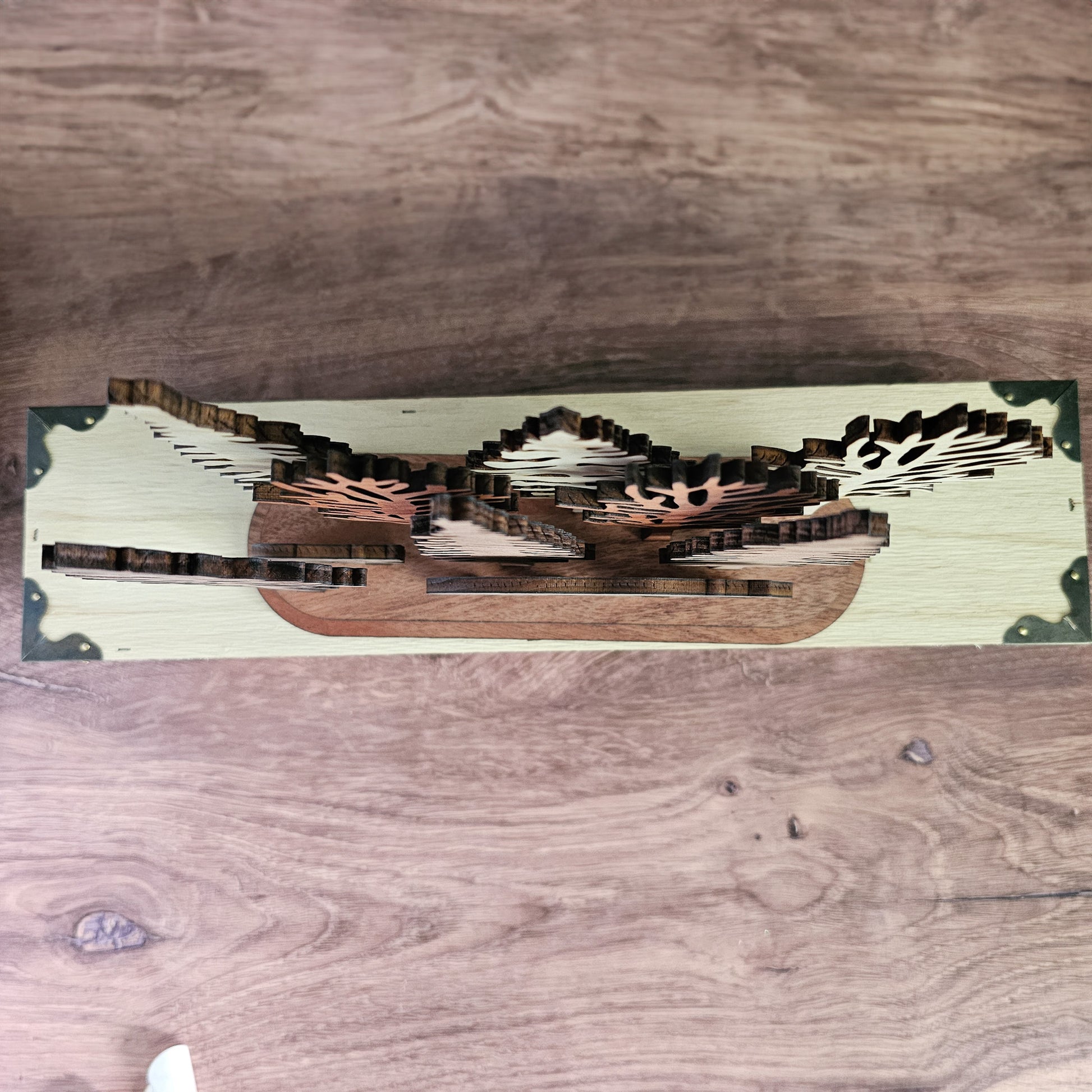 Imagine the smooth, cool feel of the finely sanded wood, the subtle scent of fresh timber, and the sight of your personalized forest scene, right on your mantel. This piece isn’t just something to look at; it’s an experience that engages your senses and brings the tranquility of the forest into your home.