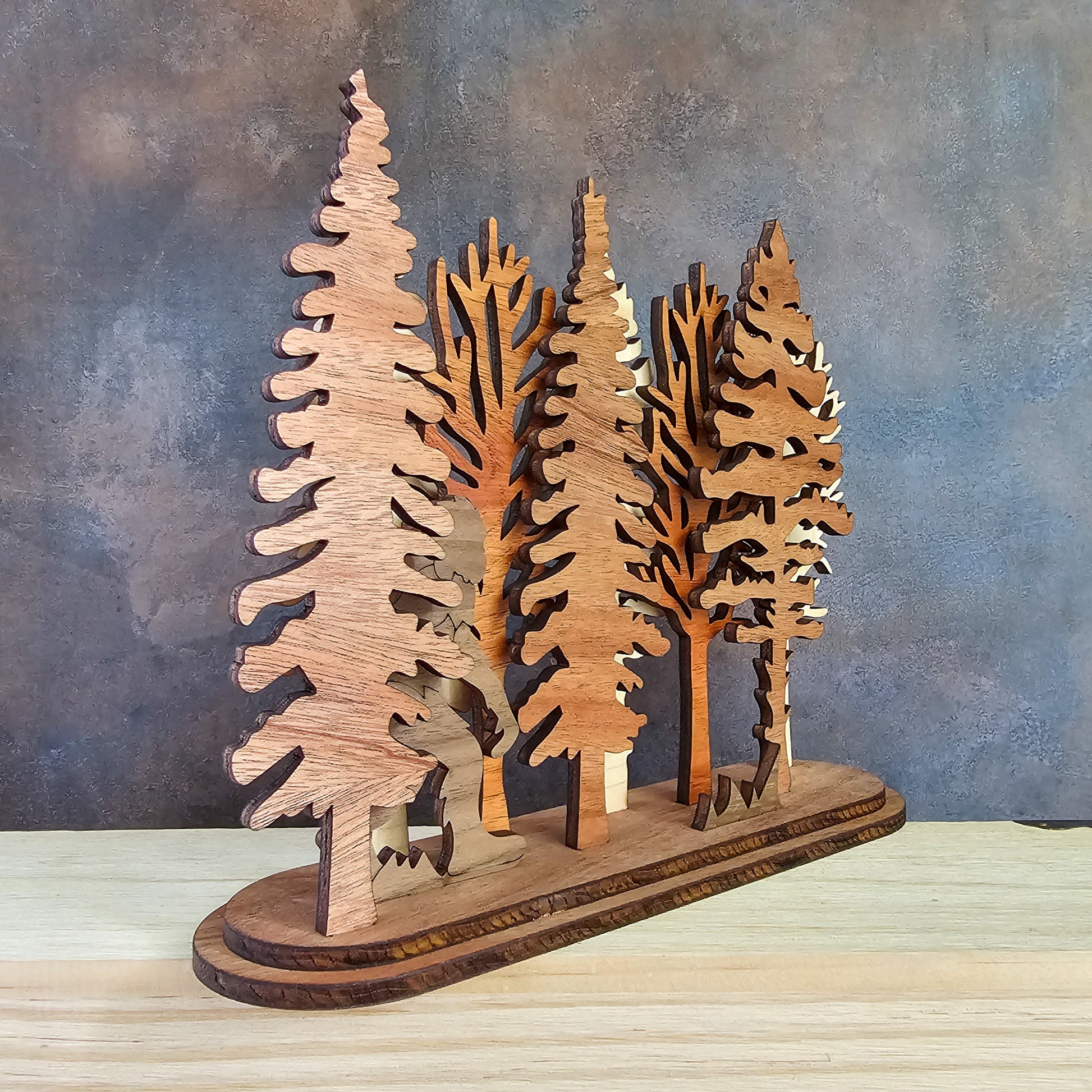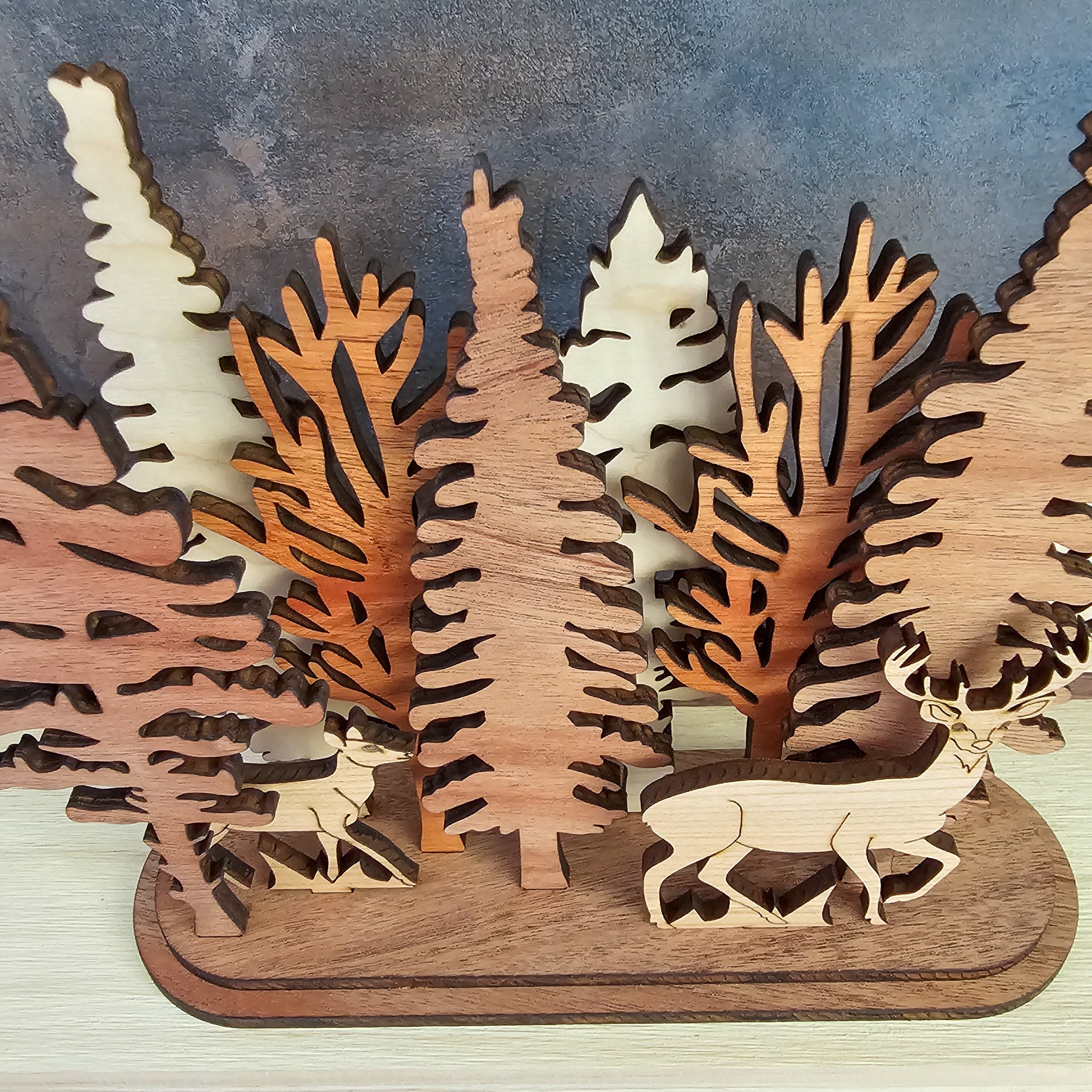 For the nature lover who cherishes the outdoors and enjoys unique, handmade décor, our Interchangeable Forest Scene is the perfect addition to your home. This 3D wooden set allows you to create and customize your very own woodland scene, right from the comfort of your living room.