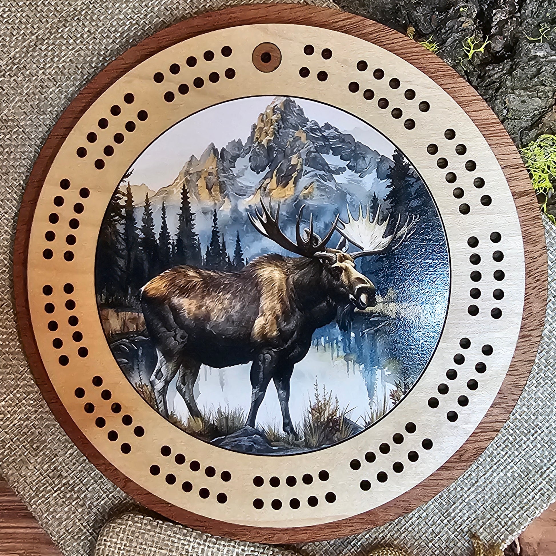 Moose Design Mini Circle Cribbage Board
