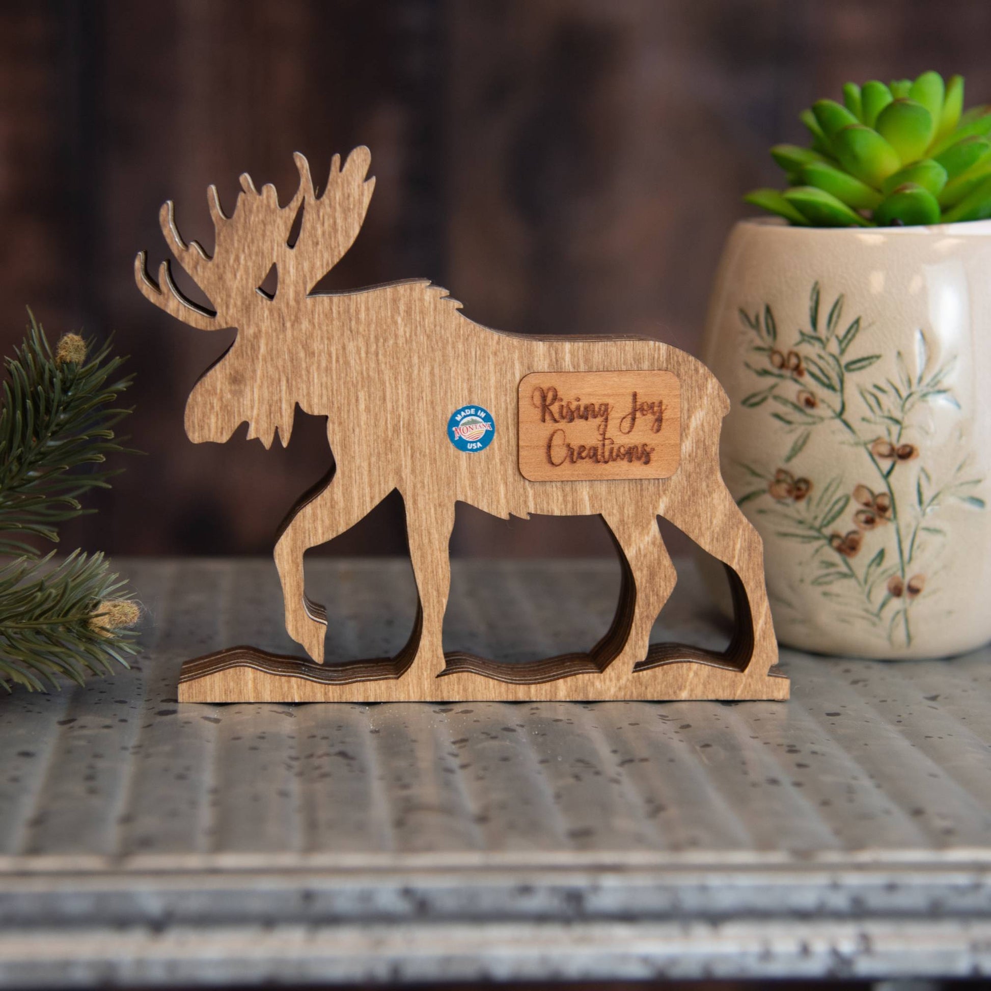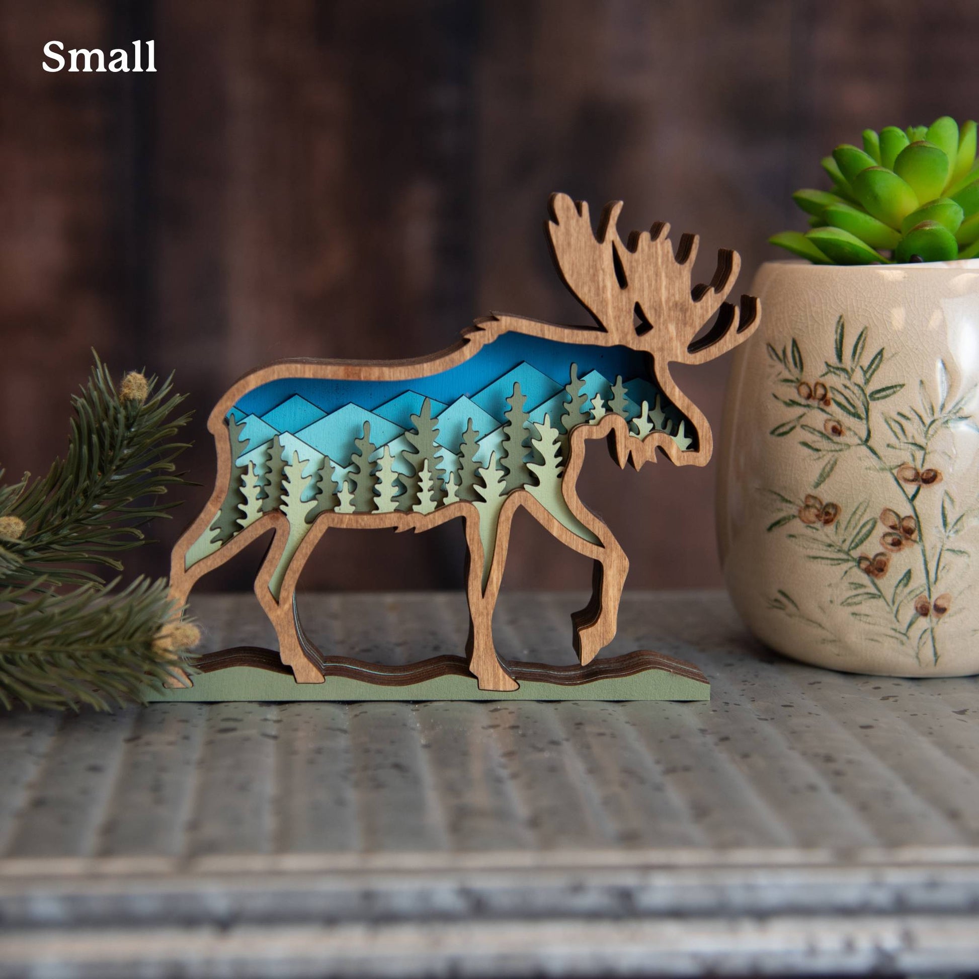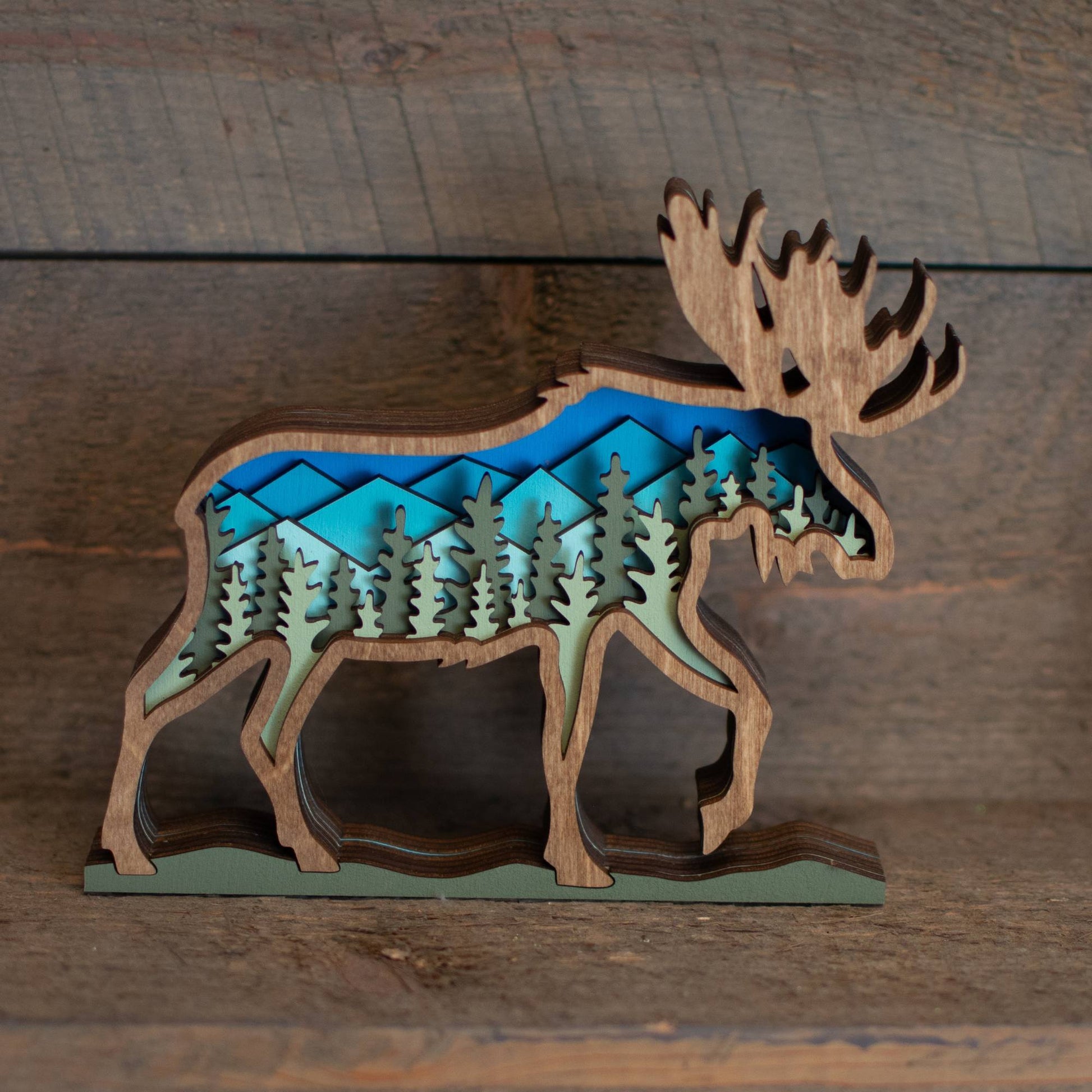 3D Layered Wood Majestic Moose Wall Art with Mountain and Forest Landscape