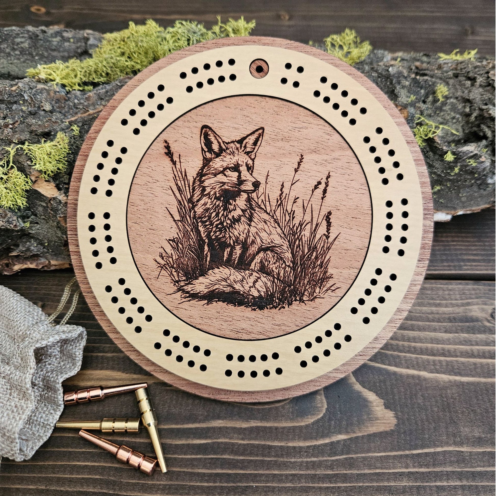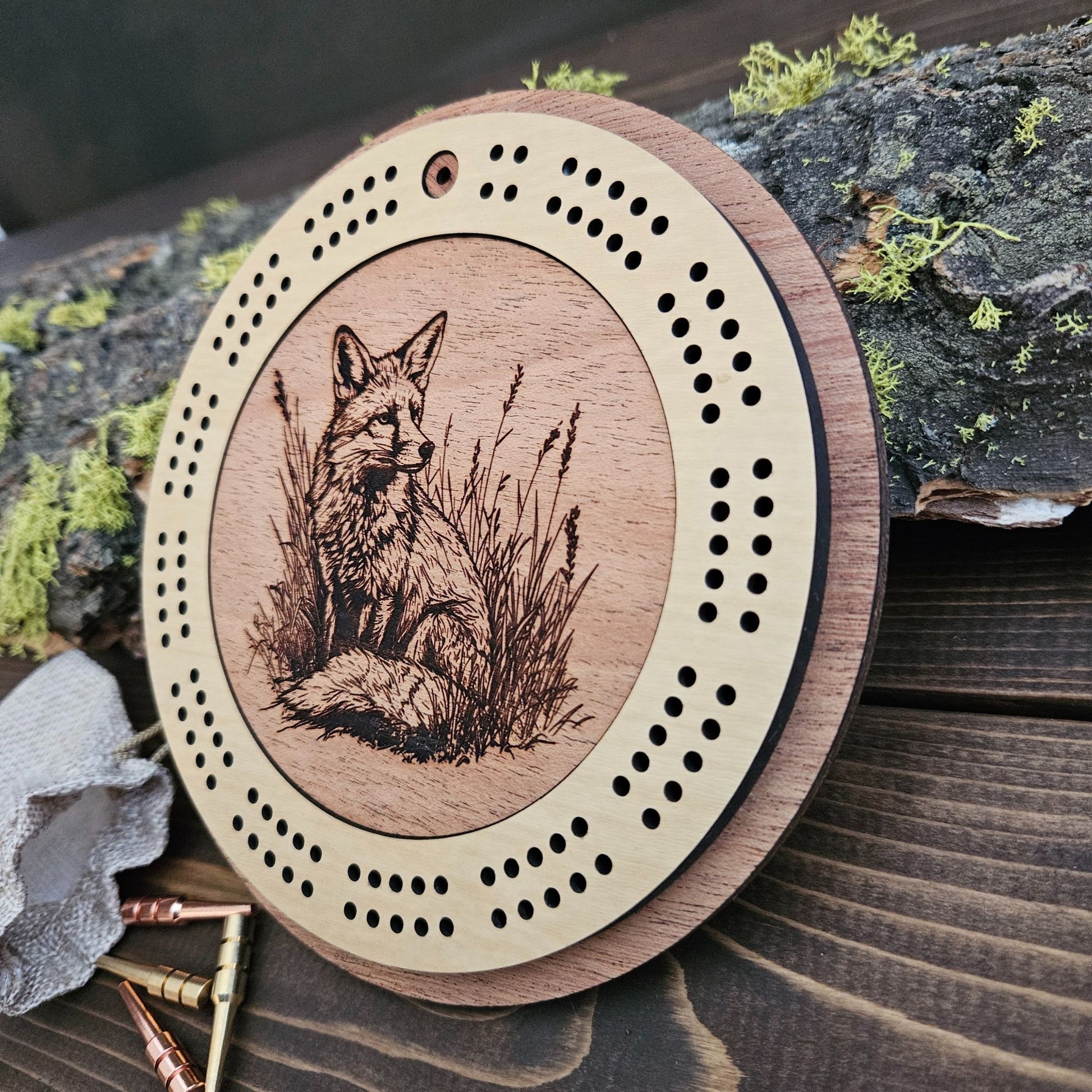 Crafted with care, this compact cribbage board features a beautiful circular design made from high-quality wood. It's durable and looks great, with a trout engraved in the center for added style.