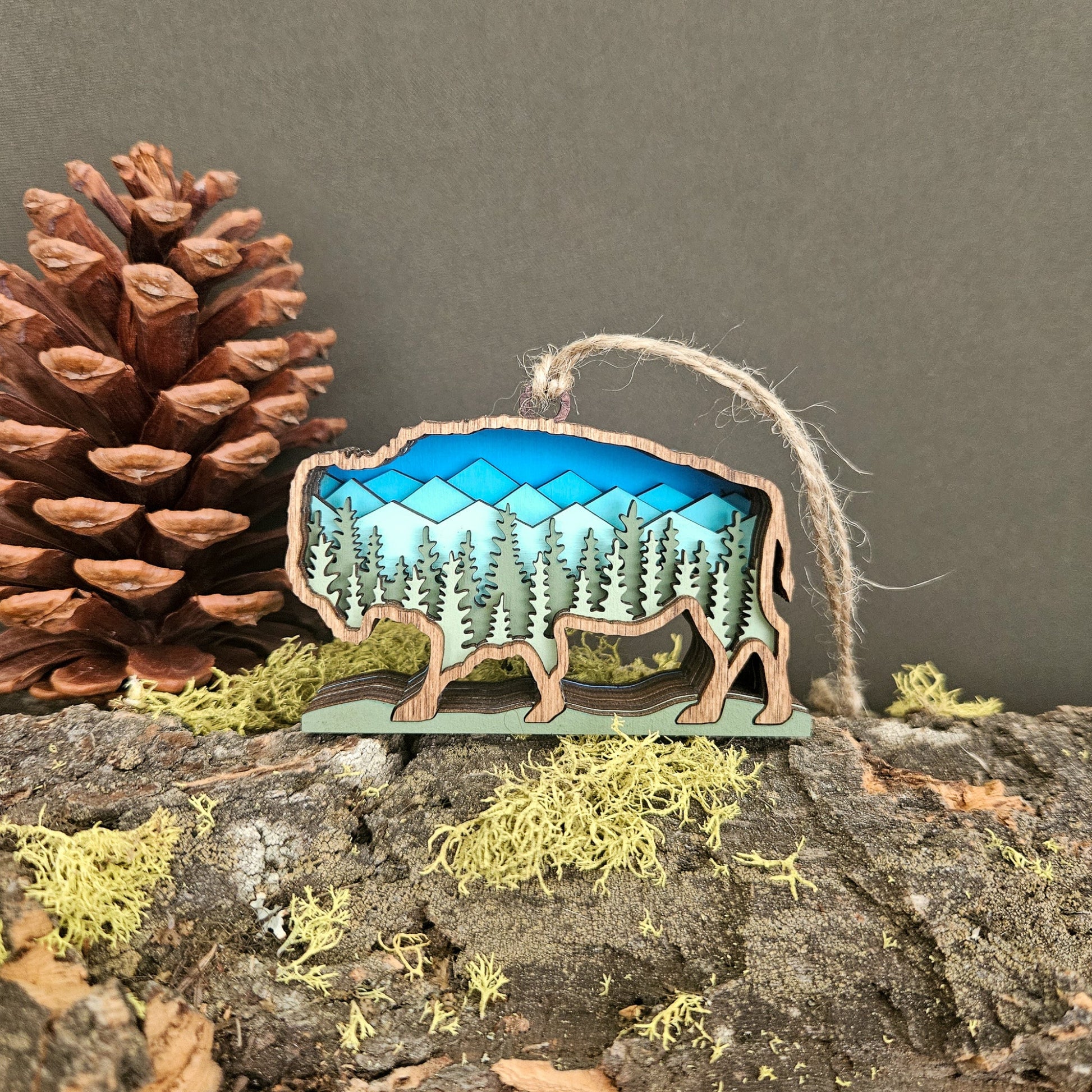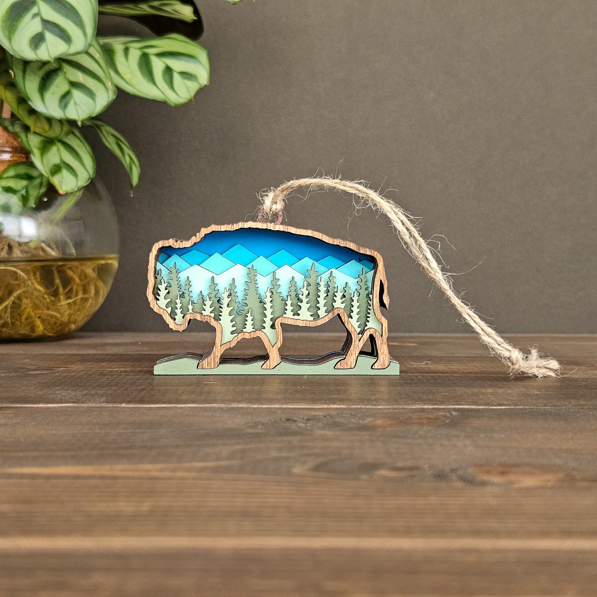 Bring a touch of the wild into your holiday décor with our Mini Bison Ornament — a smaller version of our layered bison design. At just 2" x 3.25", this keepsake is the perfect size for compact tabletop Christmas trees, small spaces, or thoughtful stocking stuffers.