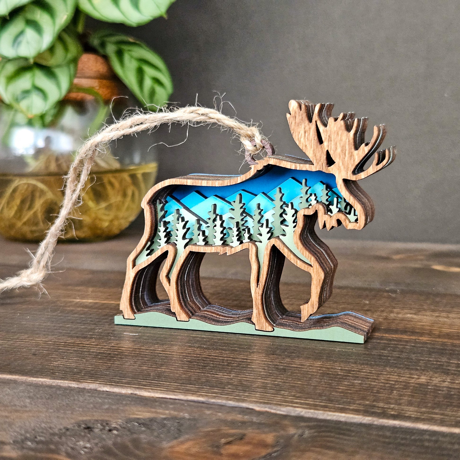 Bring the majesty of the forest into your holiday décor with our Mini Moose Ornament — a smaller version of our layered moose design. At just 2.6" x 3.2", this keepsake is the perfect size for compact table top Christmas trees, cozy spaces, or as a thoughtful gift for wildlife lovers.