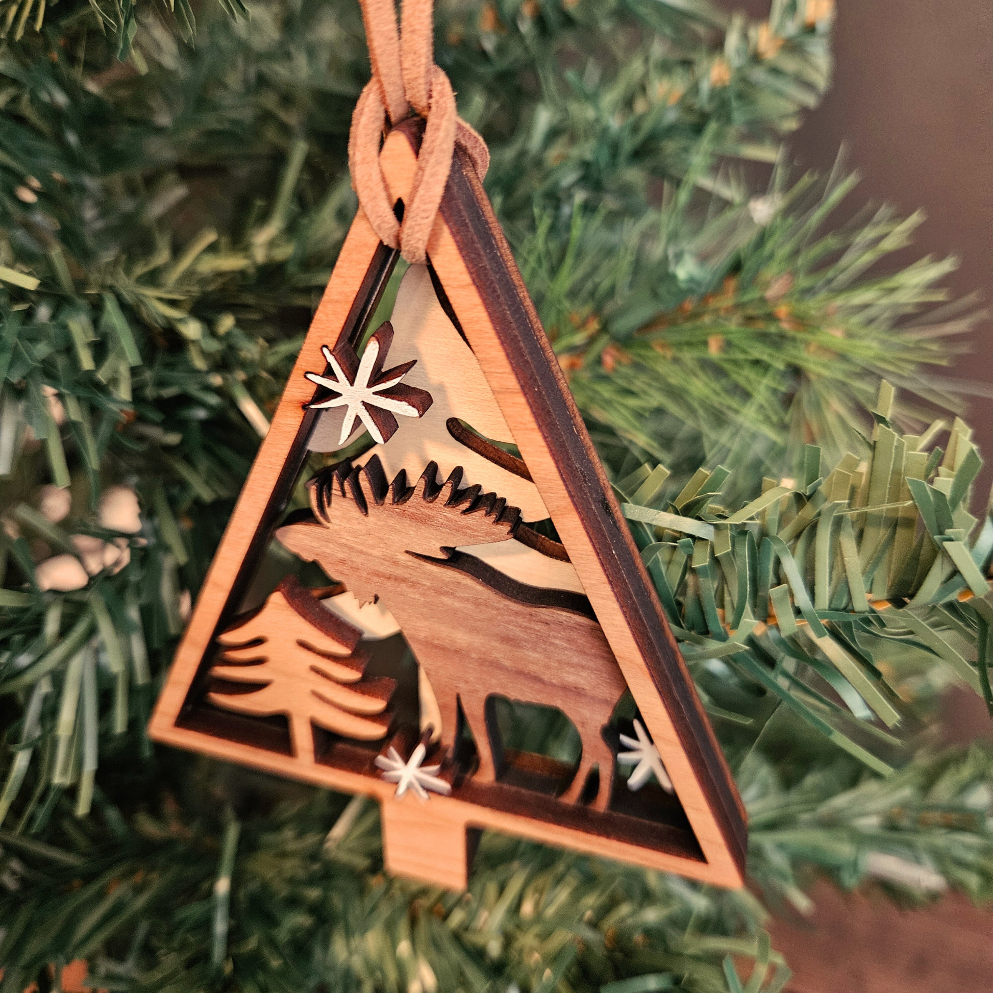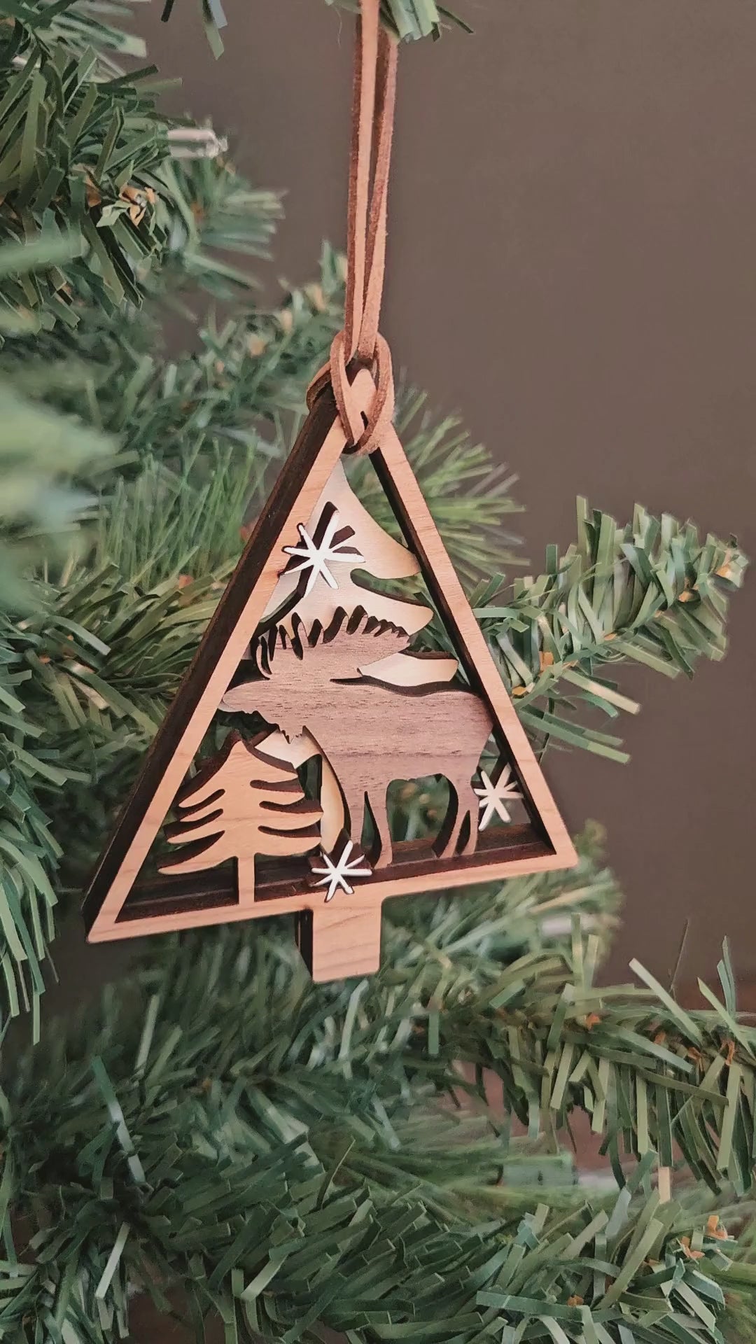This beautiful ornament is crafted from three separate layers of wood, each intricately cut and assembled to create a stunning 3D design. Whether you're gifting it or adding it to your own tree, it's a keepsake that will be treasured for years to come.