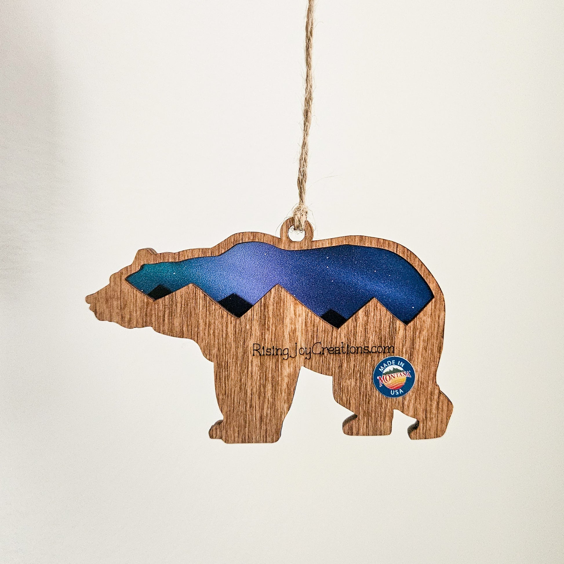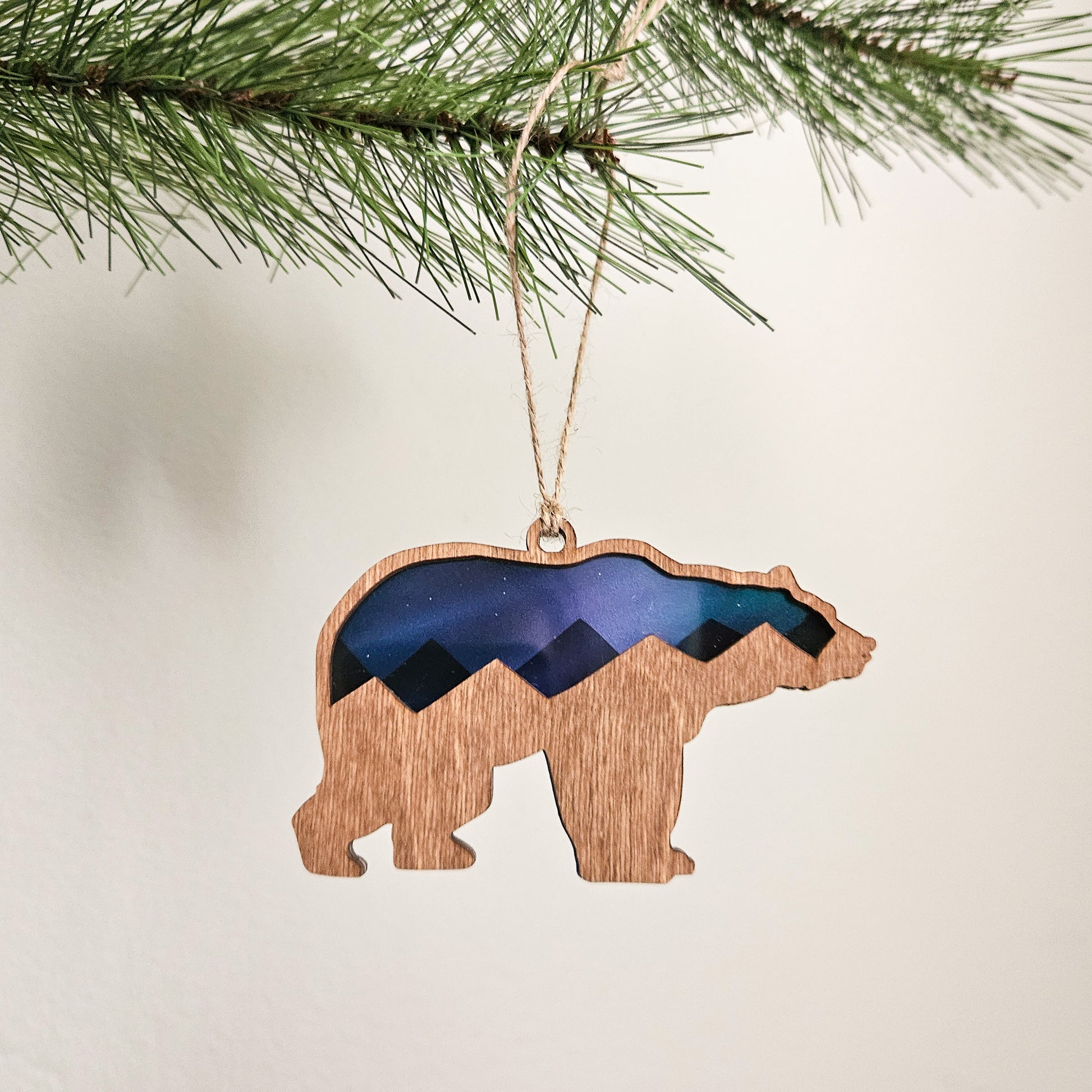 Bring the wonder of the outdoors to your holiday season with our Northern Lights Bear Ornament.