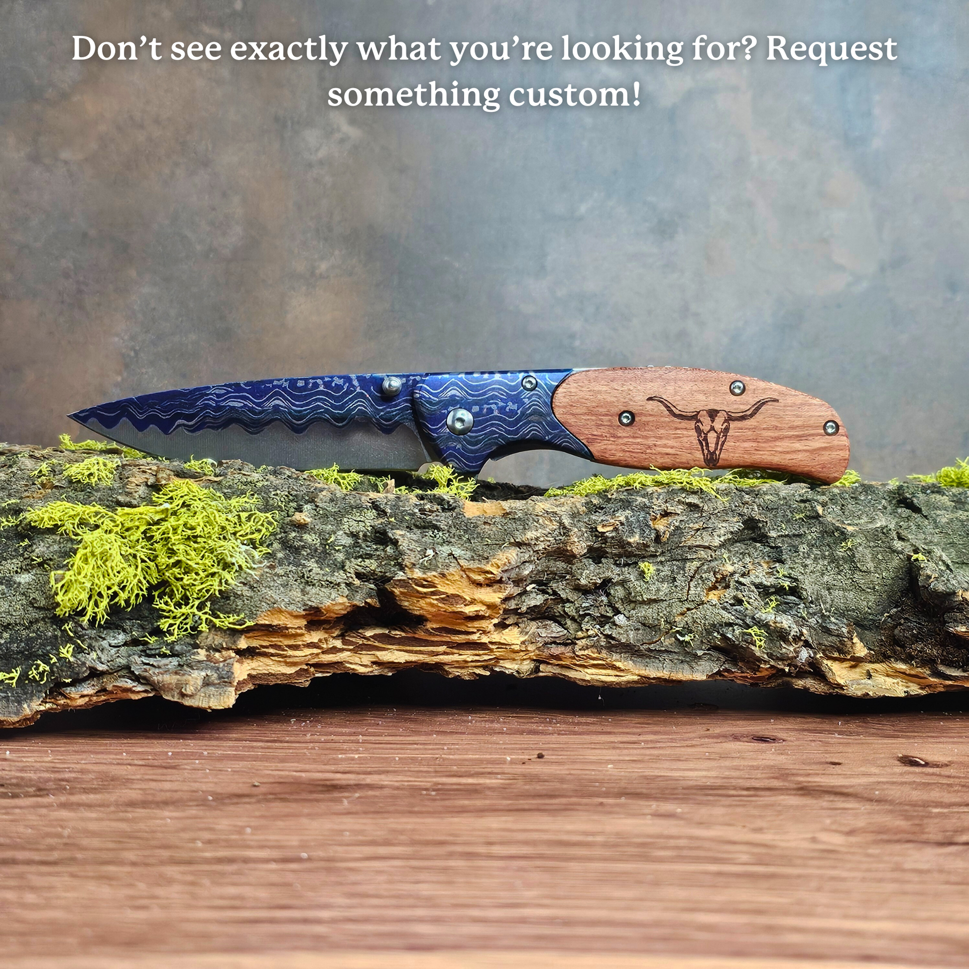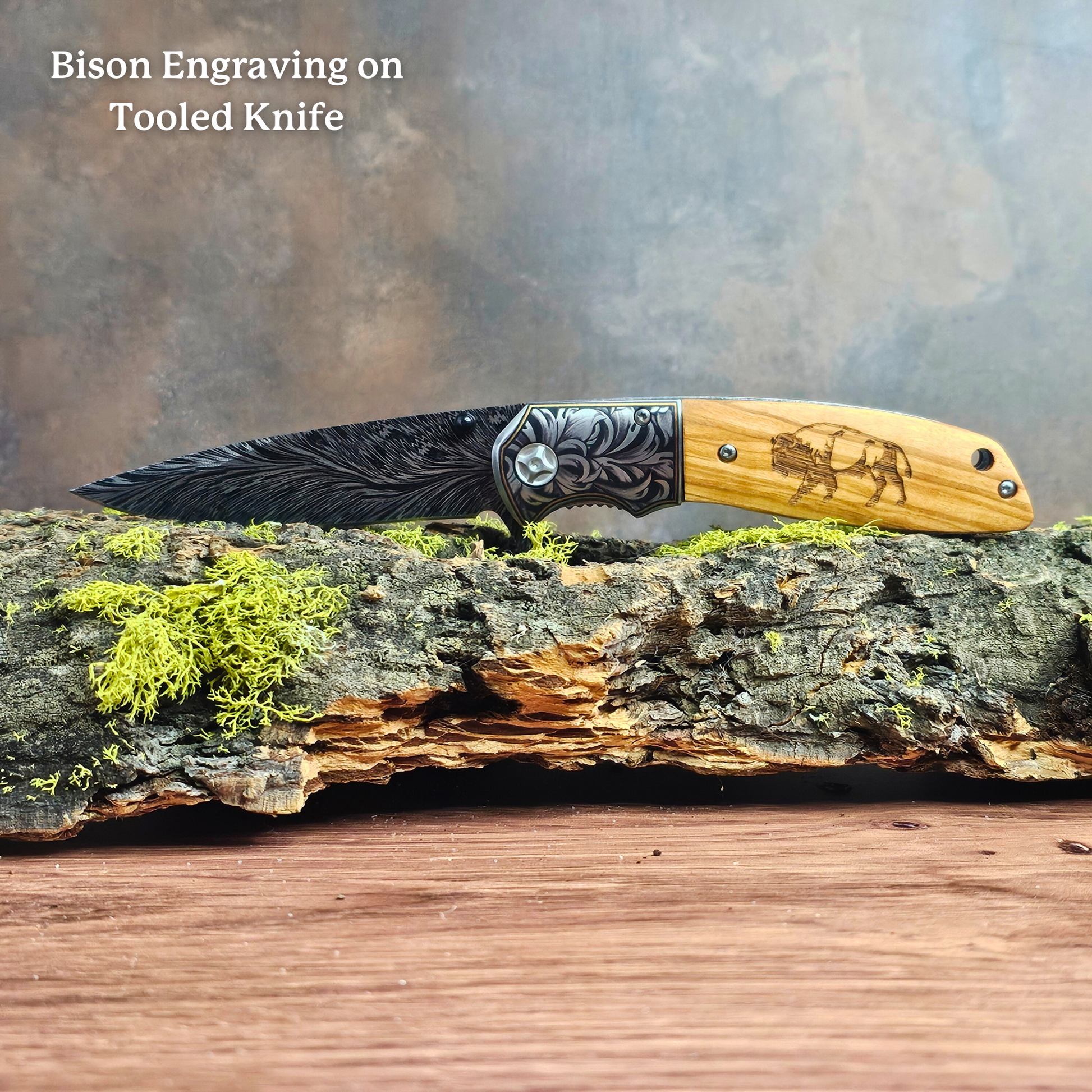 One-of-a-Kind Design: Unlike mass-produced knives, each piece is crafted to be unique, with detailed tooling and personalized engraving options. Due to the nature of wood, each knife handle will have a unique grain pattern, enhancing the natural beauty of your piece. This means your handle may vary slightly in appearance from those pictured, adding a one-of-a-kind quality to your knife.