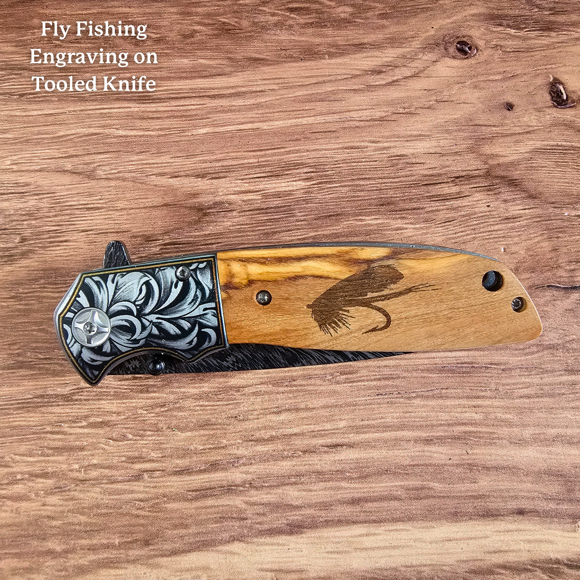 Engraving location may vary on the back of the knife to achieve the best fit based on the knife style and length of the name.