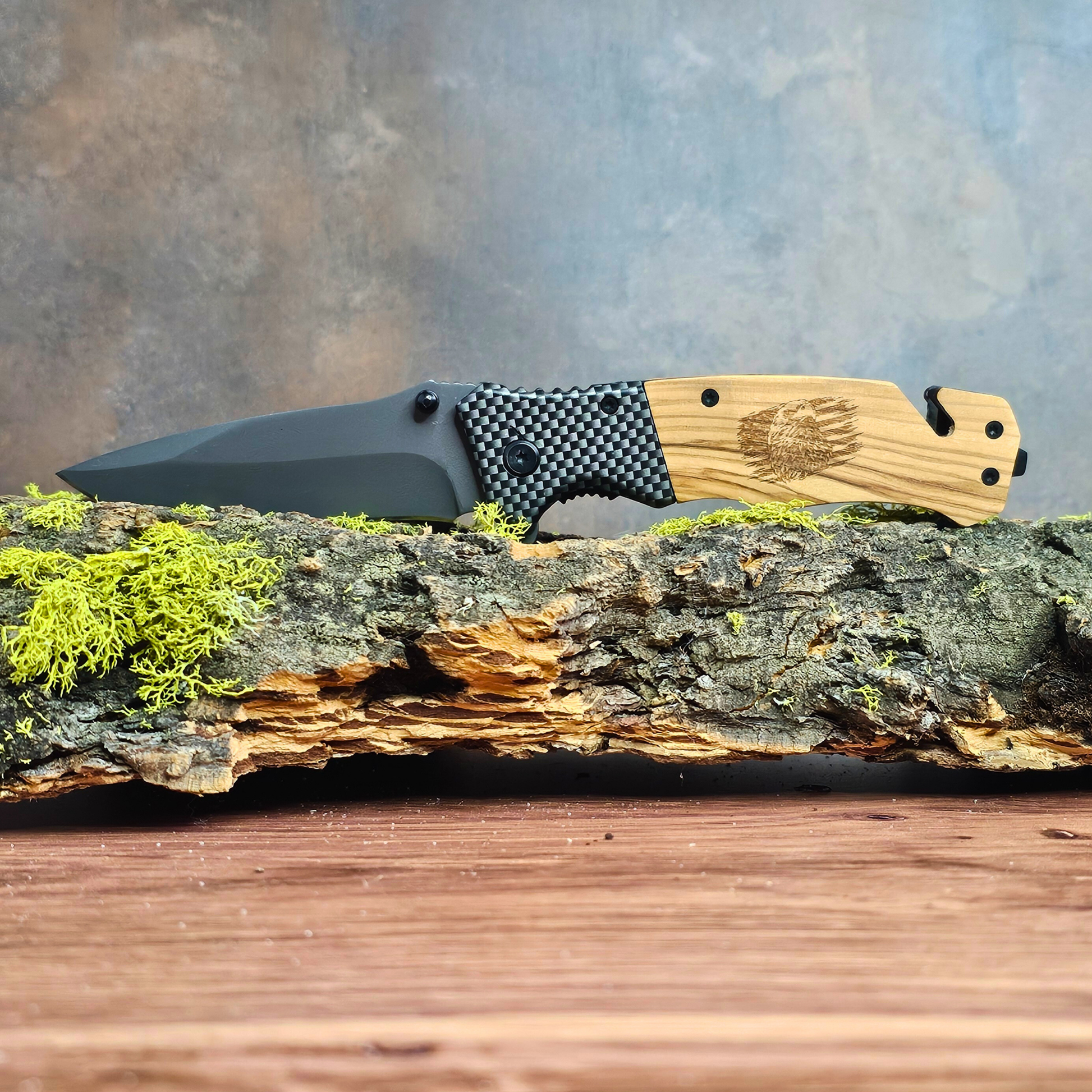 Crafted in our family-run studio in Helena, MT, this Personalized Tactical Knife combines practicality with a personalized touch. Ideal for camping, hiking, or gifting, it’s made for those who value a unique personalized gift or keepsake.
