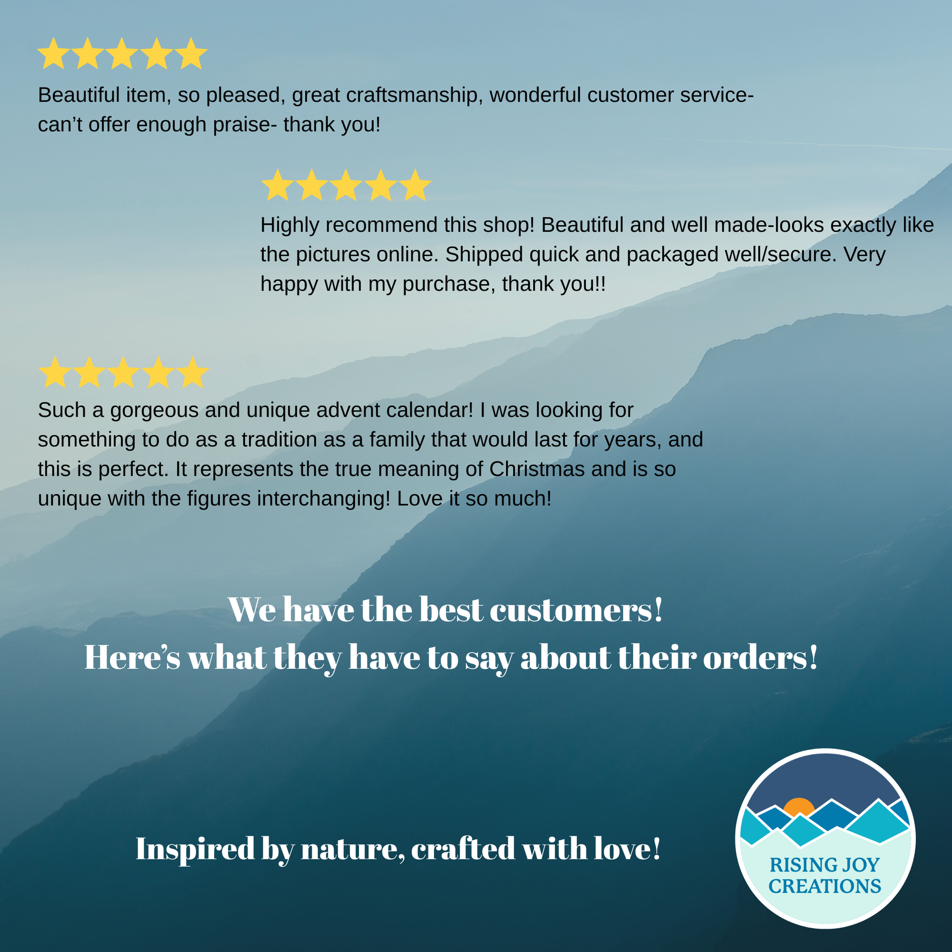 This comes with two separate pieces to mark the countdown to Christmas Day. One has Mary and Joseph as they travel to Bethlehem and the other has a manger scene with baby Jesus. You can simply use one during the entire countdown or start with Mary and Joseph and switch to the manger scene on Christmas Day.